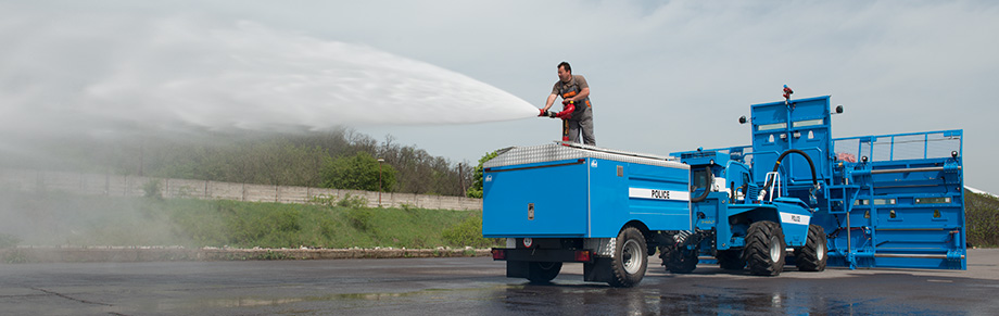 BOZENA RIOT was developed in a close cooperation with specialists of the Slovak Police Corps. In principle, BOZENA RIOT is the well protected and easy deployable barrier which can be flexibly used in favor of actual operational needs as a tool: